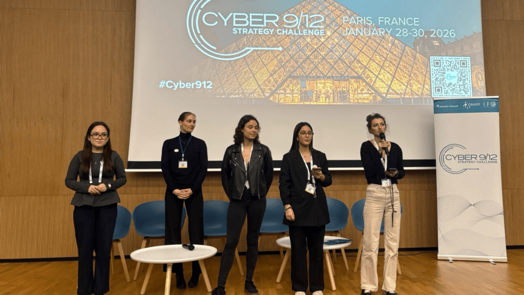 Du 28 au 30 janvier 2026, Les Cadettes de la cyber ont eu l’honneur de représenter le Pôle d’excellence Cyber lors de l’édition française du Cyber 9/12 Strategy Challenge, une compétition internationale de stratégie et de politique cyber organisée à Paris par le Atlantic Council, un organisme international de référence en matière de diplomatie et de politique cyber.